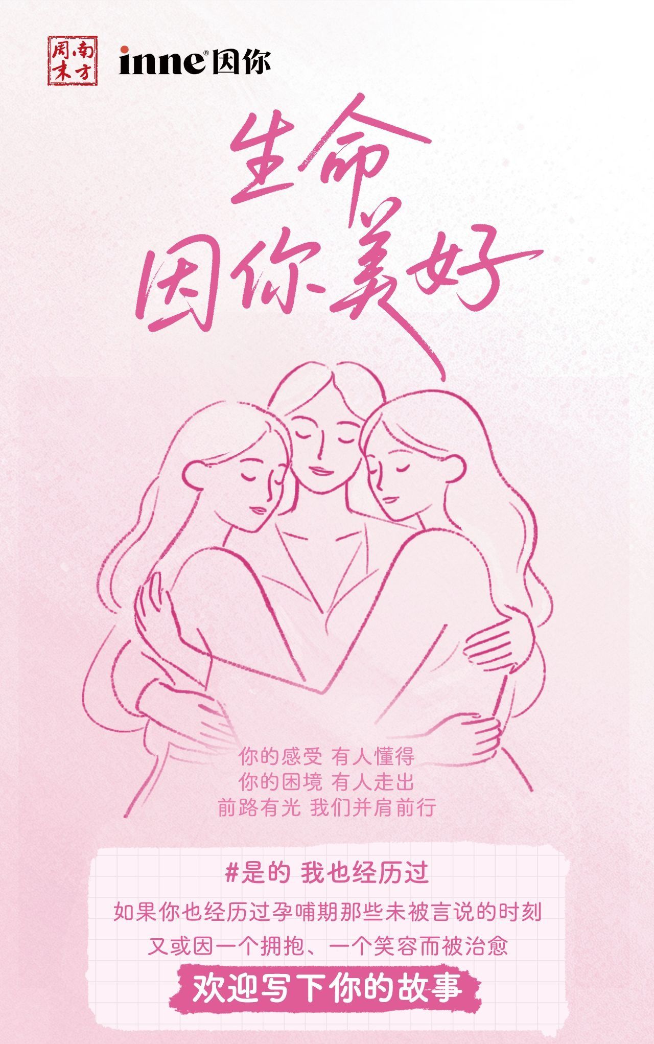 为了让更多妈妈们的声音被听见,德国高端营养品牌inne因你携手南方周末发起征集,聚焦孕哺期妈妈们的故事,让彼此的分享成为照亮同行者的微光,“是的,我们经历过,我们懂得。”